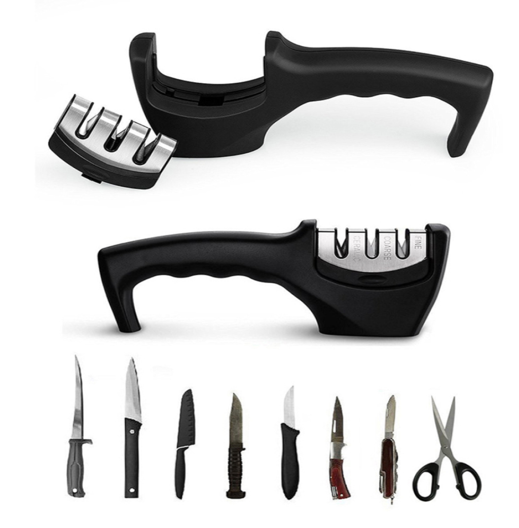 O Afiador de Facas da Coolina é super útil e perfeito para afiar todos os tipos de facas, é mais seguro que outros afiadores pois seu cabo é nas laterais afastado das lâminas principais, com base estável, fácil de segurar e que fica em pé durante o uso, 3 afiadores em um só, por isso é flexível e pode ser utilizado pra todos os tipos de faca. Possui um cabo ergonômico e confortável de segurar durante o processo, não desliza, e é projetado para se ajustar ao formato da mão. A peça com as lâminas para afiar é removível para fácil manutenção e limpeza.