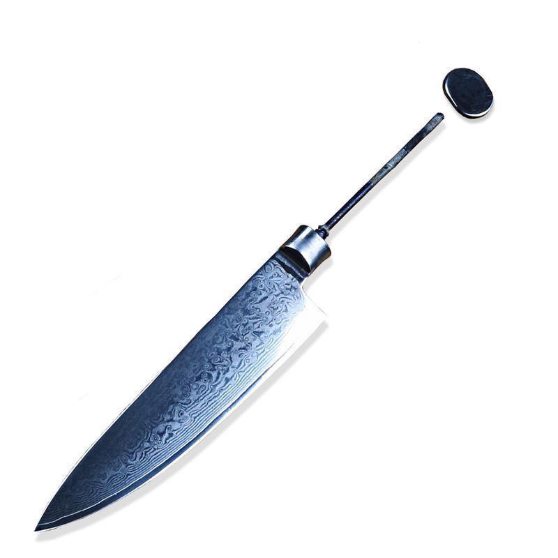Essencialmente, é um embrião de faca de cozinha que vem sem punho. Isso significa que você pode fazê-la sozinho ou obter um que você realmente gosta. Você pode remover a ponta da espiga de aço e adicionar sua alça com facilidade.